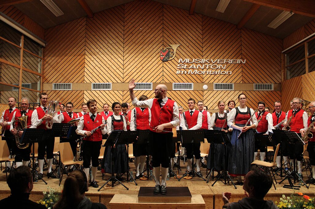 Jazzig her ging es beim diesjährigen Frühjahrskonzert des Musikvereins St. Anton i. M. am 28. März 2026 im Gemeindesaal. Nach dem ersten Konzertteil mit Stücken wie „Lord Tullamore“ und „The Witch and the Saint“ folgten im zweiten Konzertteil unter anderem jazzige Rhythmen von Frank Sinatra, In The Mood und Mac Arthur Park.